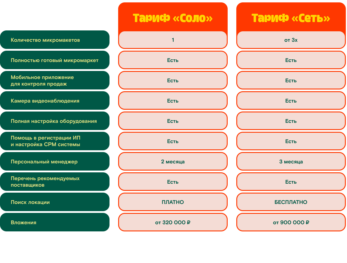 В стоимость бизнеса включены полностью описанные и отработанные бизнес-процессы, которые мы наработали при открытии более 300 точек своих и партнерских. Они позволят вам быстро стартовать и получать прибыль.